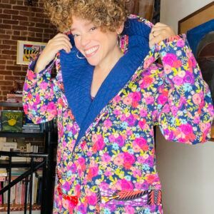 Marcy Harriell works on her dream of upcycling a quilt into a comfy travel garment by first sewing a coat with prequilted yardage.
